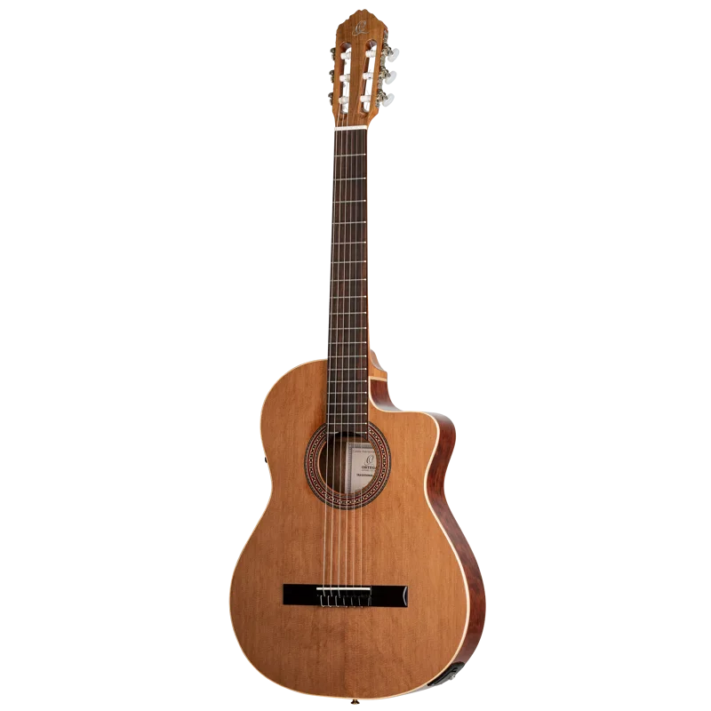 Solid North American cedar top, gloss finish; Bubinga back & side, gloss finish; Maple top binding; Mahogany neck, gloss finish; Rosewood fretboard & bridge; Ortega 12hole bridge; MagusPRO electronics w/ tuner; Body depth 75 mm (2.95"); Handmade in Spain; Deluxe gig bag included